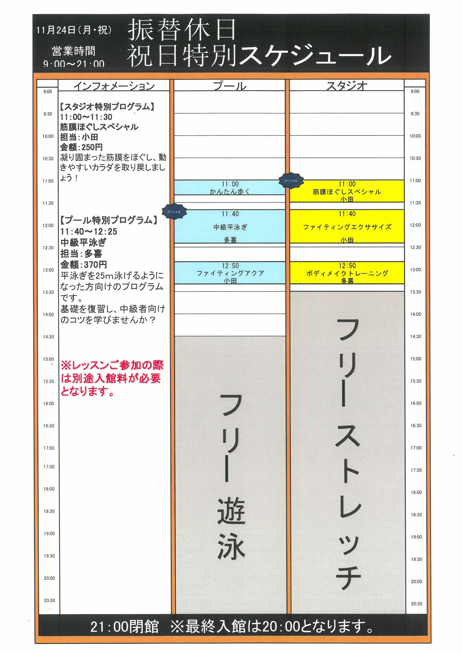【プログラム関係】2025年11月24日(月祝)振替休日特別スケジュールはこちら