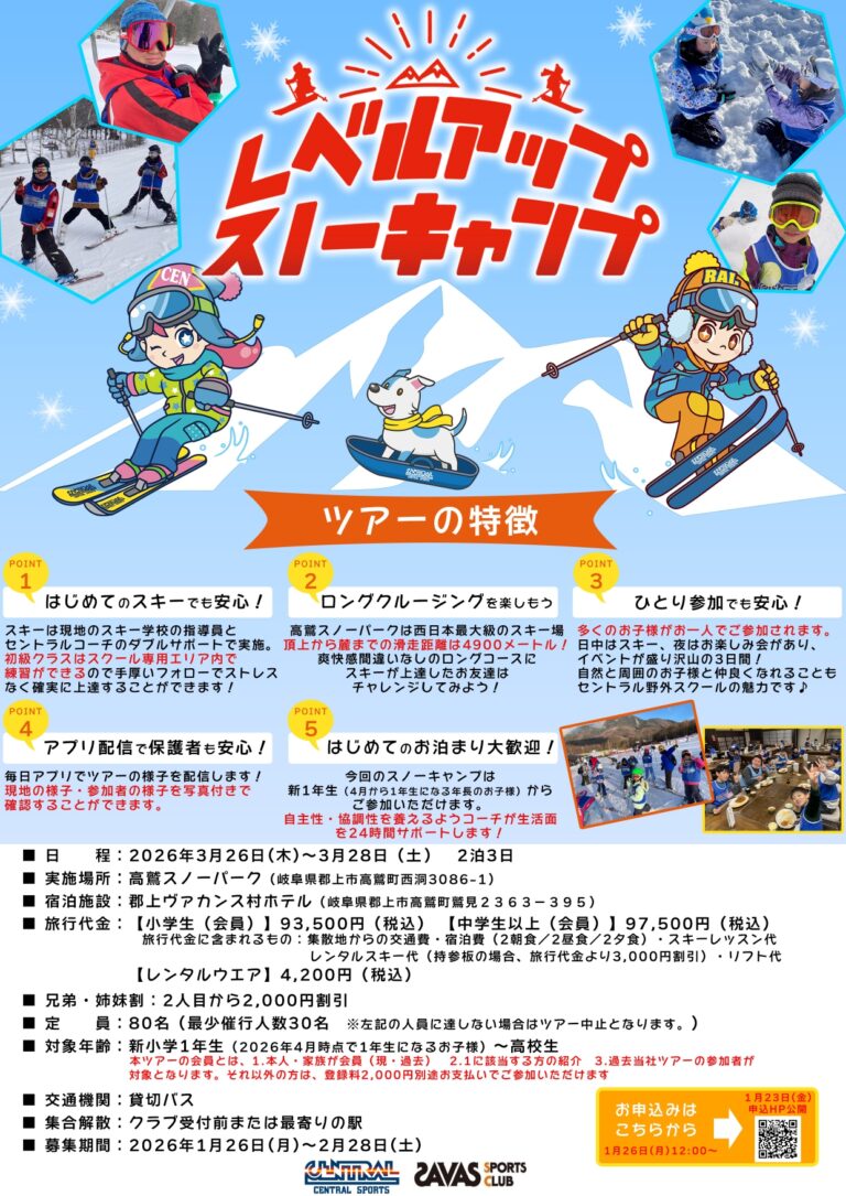例年セントラルスポーツで募集をしているスノーキャンプですが、この度中央屋内プールでも募集をいたします。