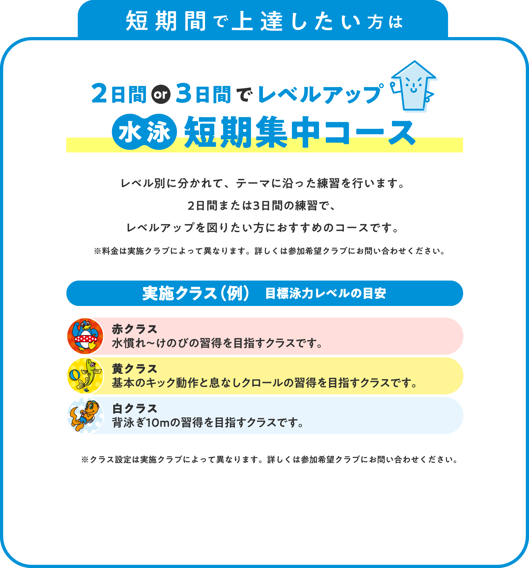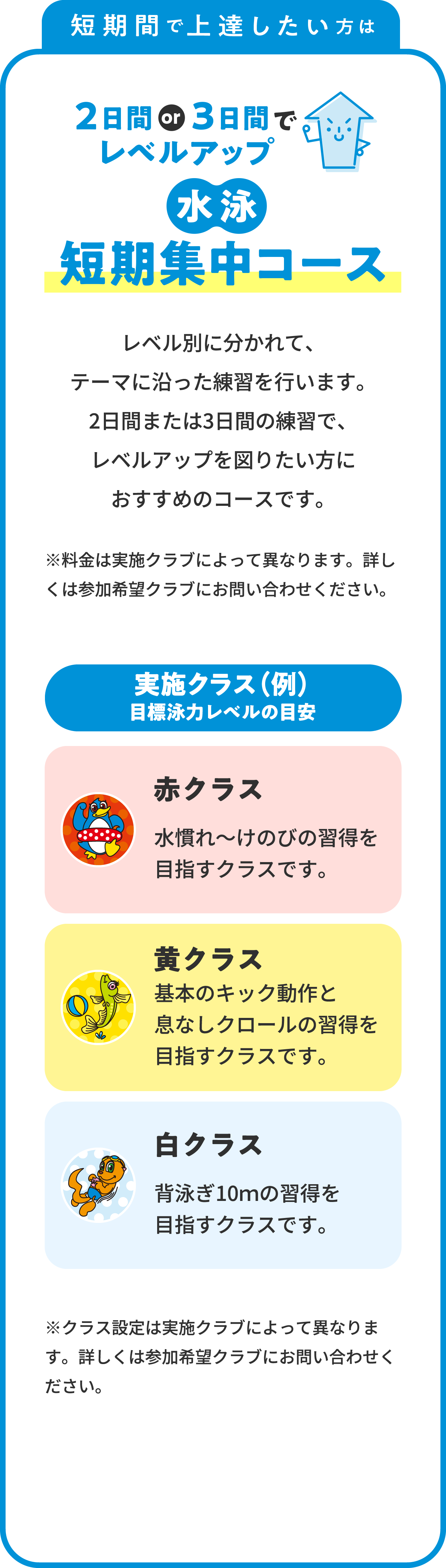 ※スクールの実施種目はクラブによって異なります。詳しくは各クラブのHPをご覧ください。
