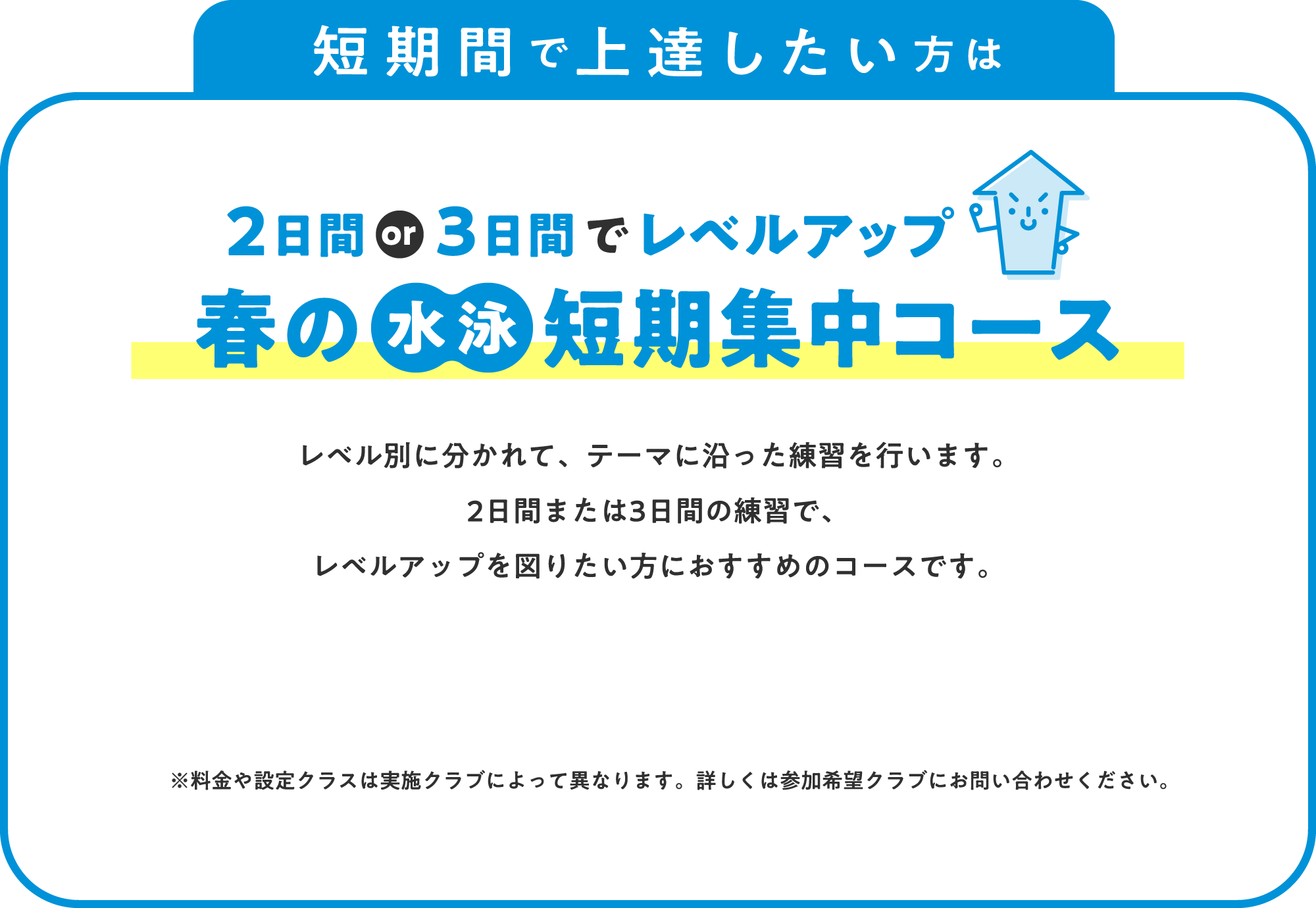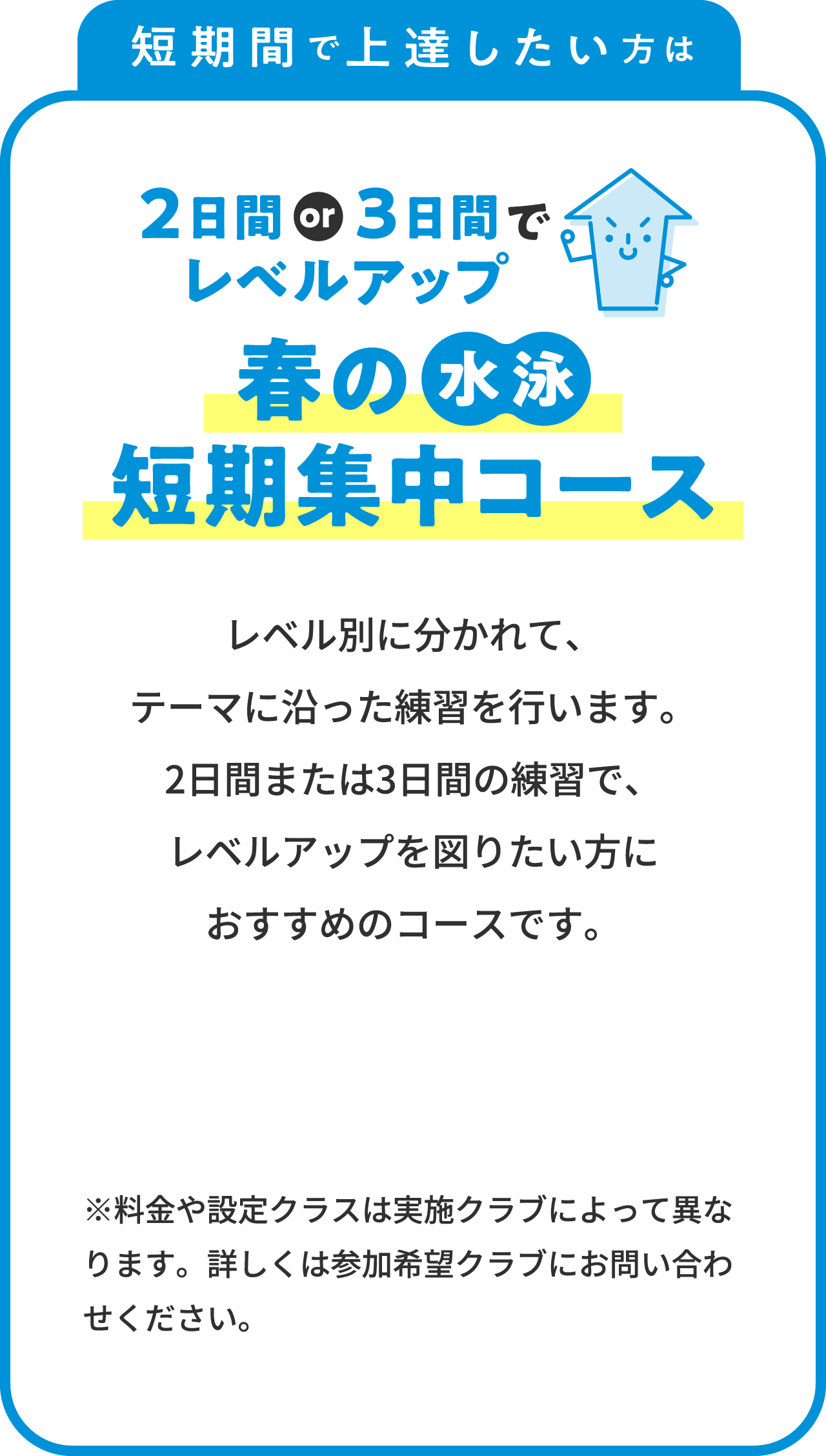 ※過去1年間在籍履歴がない方かつ最低2ヶ月間在籍を条件とさせていただきます。※特典はご入会いただいたコースの指定着となります。※クラブによって実施種目・入会特典が異なります。詳しくは店舗ホームページをご確認ください。※他のキャンペーンとの併用はできません。※退会後1年未満の再入会手続きは、カード発行手数料 無料のみ対象となります。※登録手数料は、キャンペーン対象外となります。