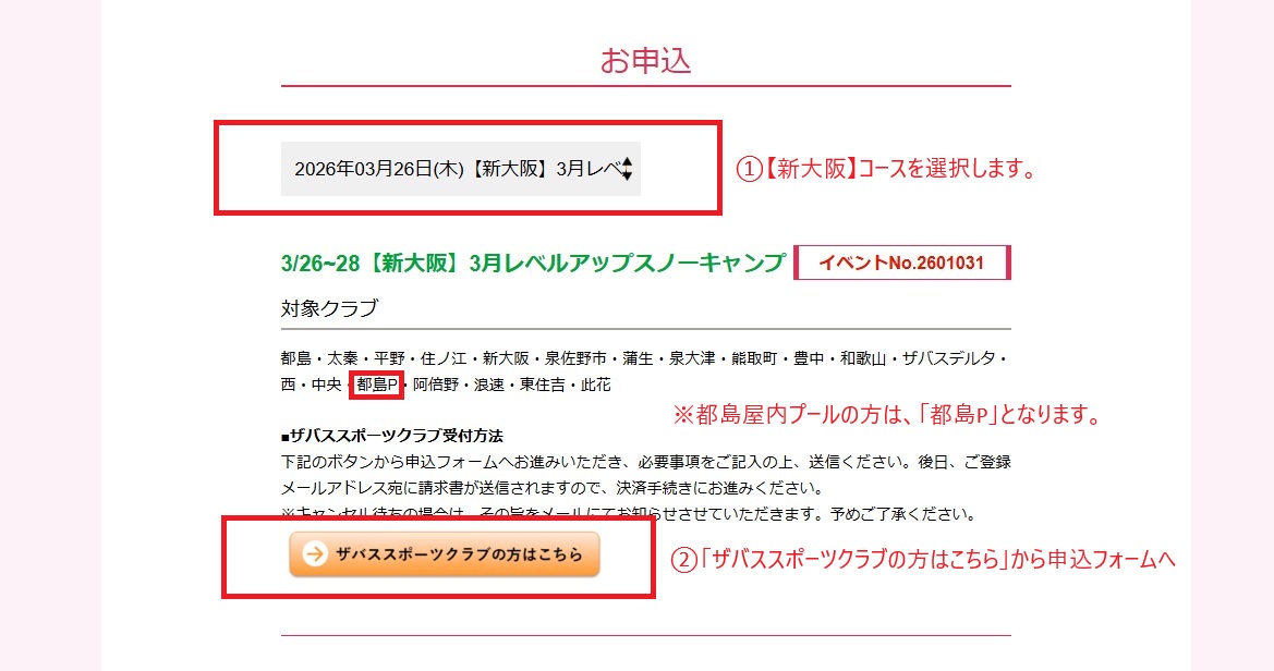②「ザバススポーツクラブの方はこちら」を選択して