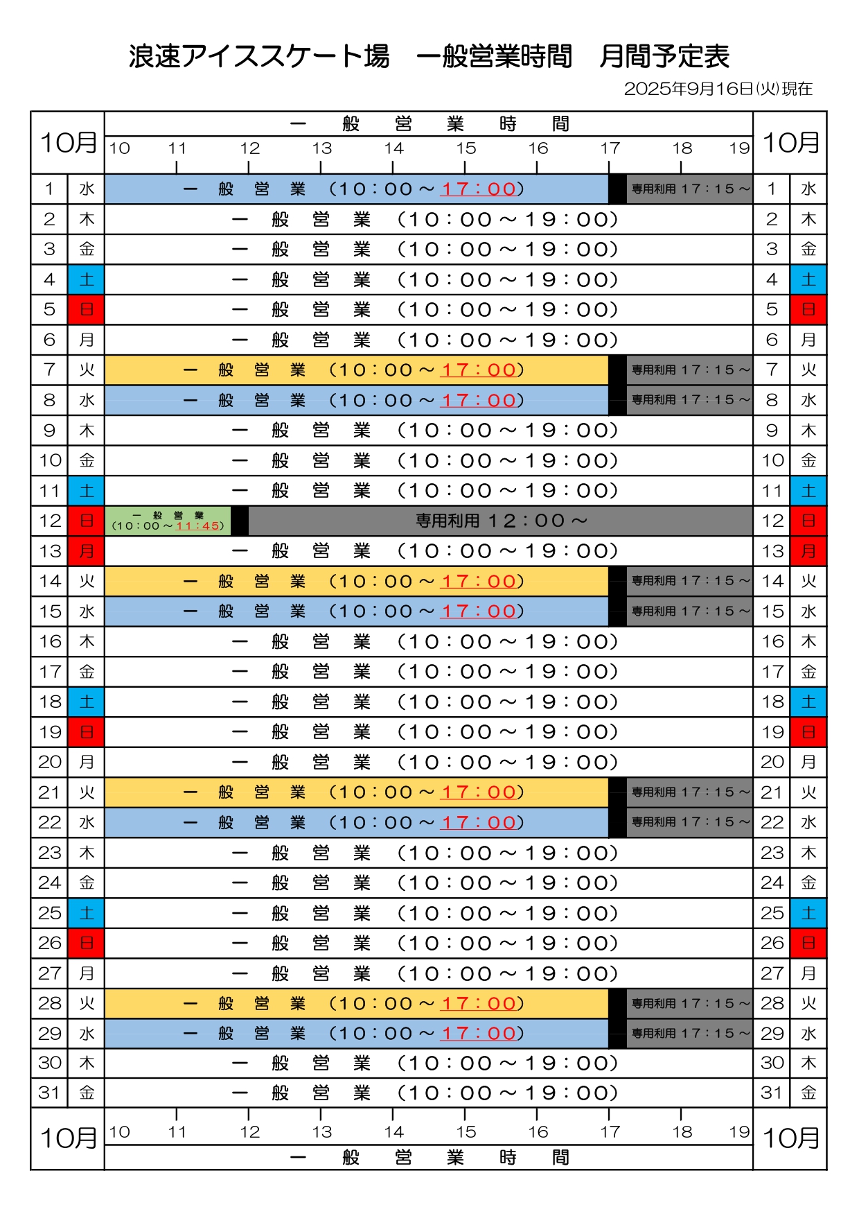 【アイススケート】一般営業時間等のお知らせ【ご利用の方はご覧ください】