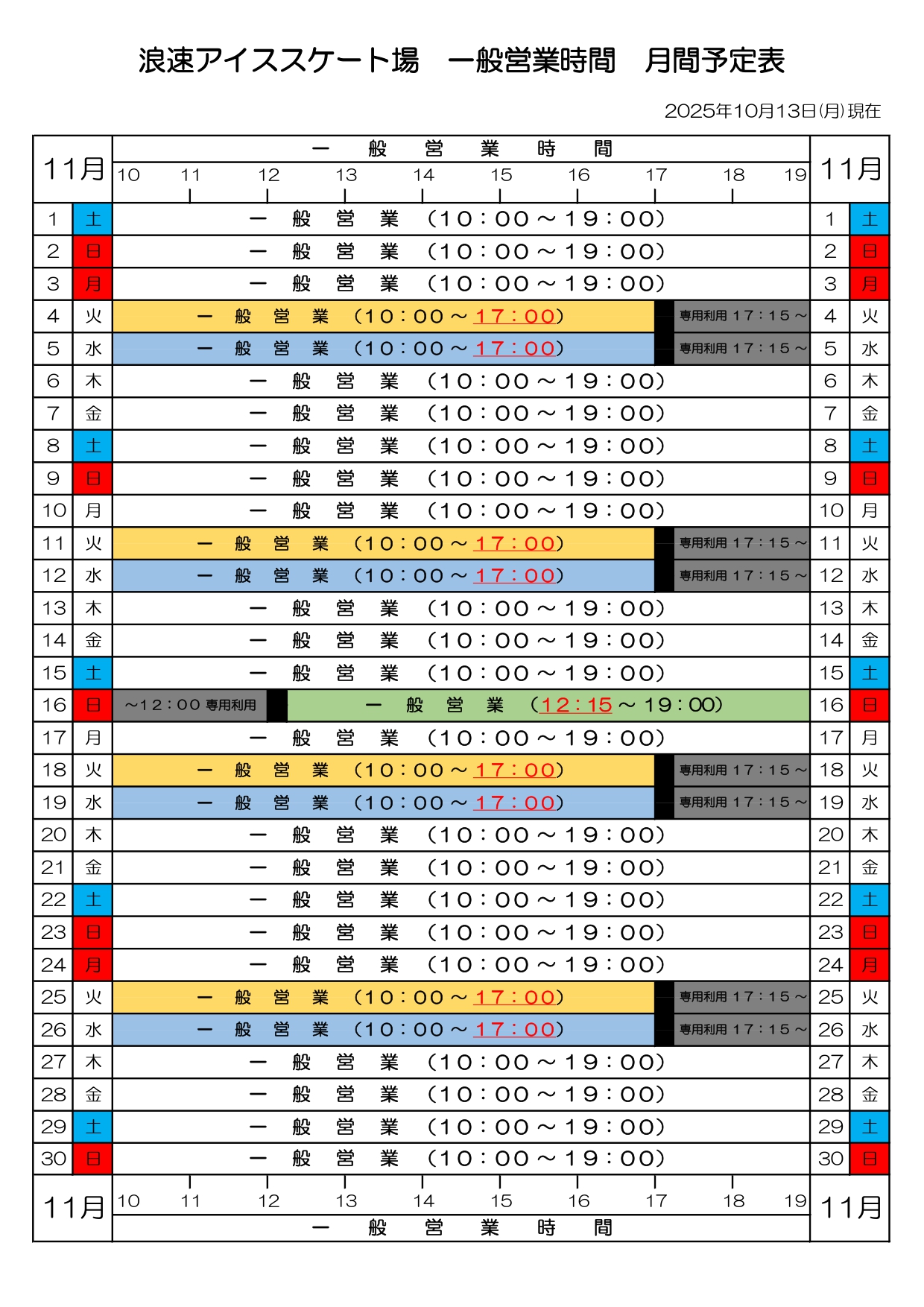 アイススケートの一般営業について、下記のとおりご案内いたします。