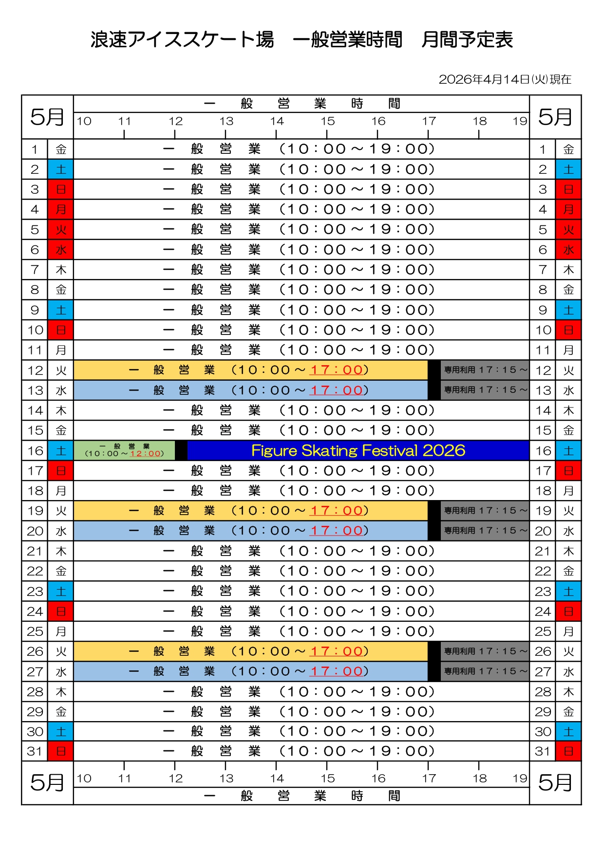 アイススケート場までお電話ください。(06-6643-6448)