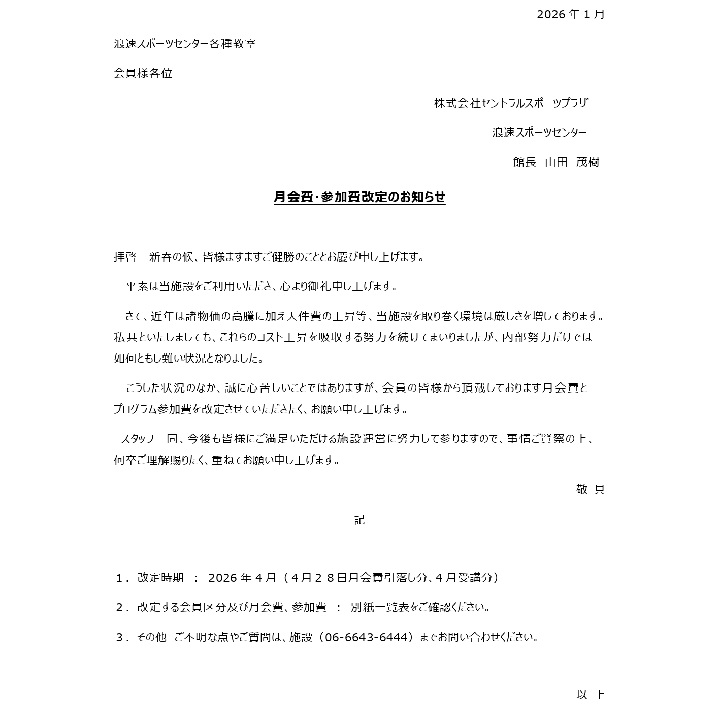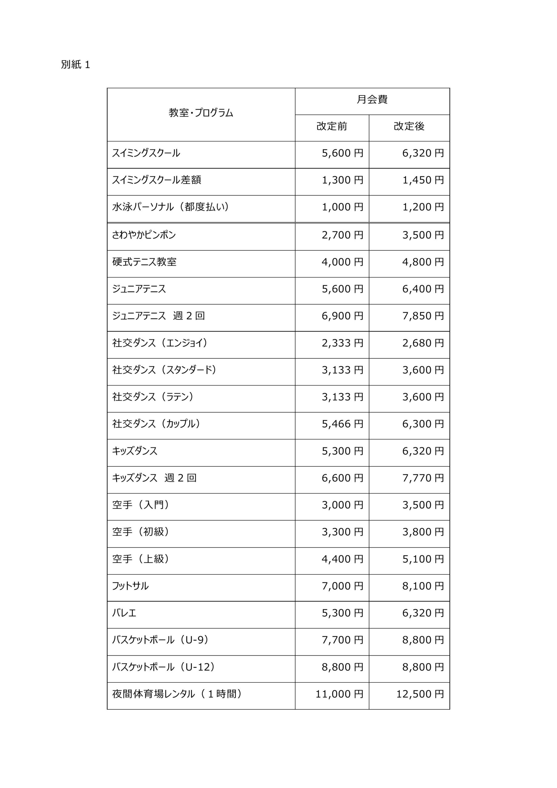 月会費・参加費改定のお知らせ
