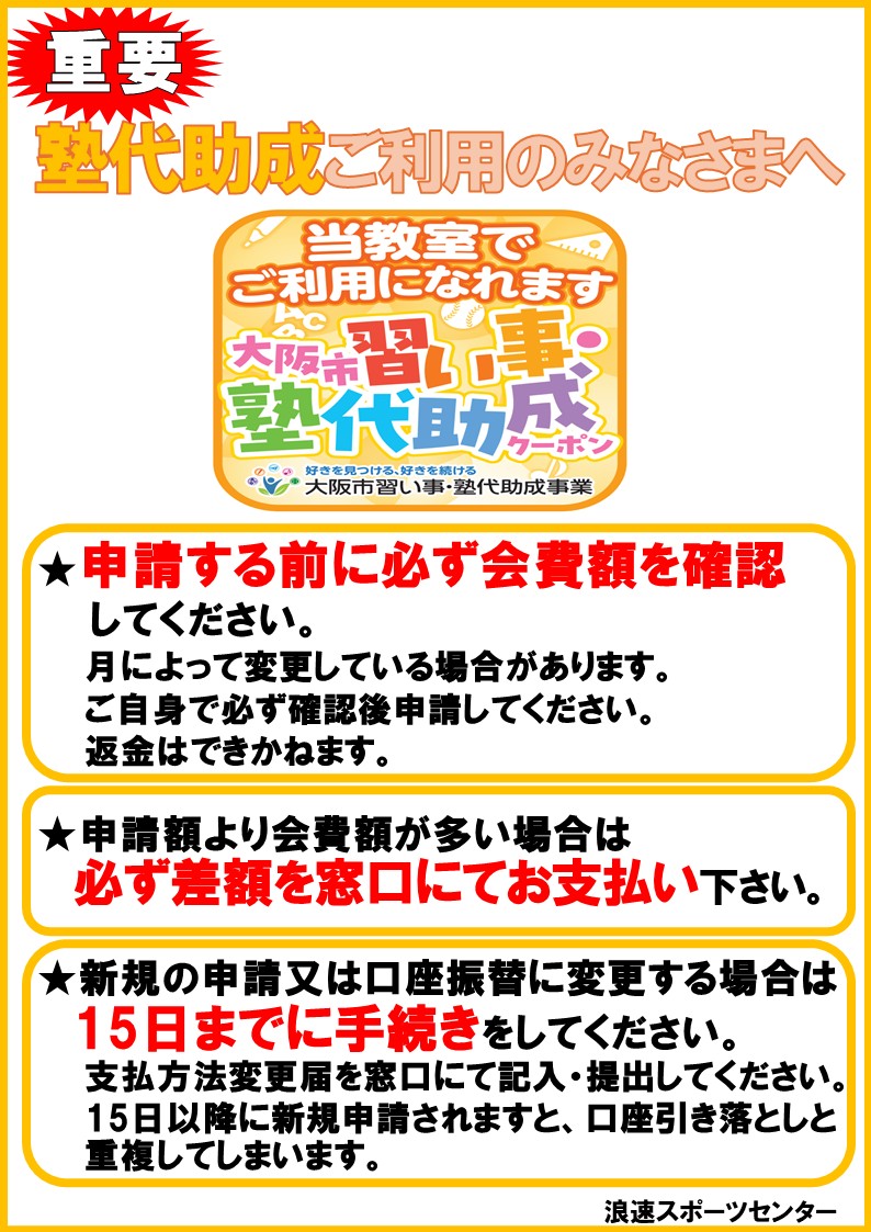 塾代助成をご利用のみなさまへ