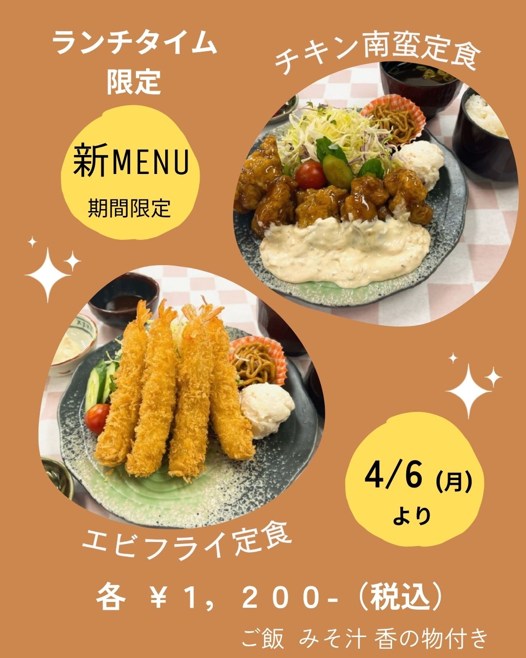 インフォメーション 【4/6(月)から】レストラン 新メニュー情報 2026/04/02 ランチタイム限定の新メニュー登場します!・チキン南蛮定食・エビフライ定食各 ¥1,200-!【販売時間】11:00~14:00 一覧へ戻る
