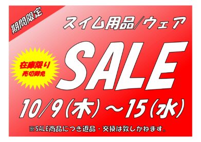 10/9(木)~【SALE】スイム・ウェア特価販売会実施予定!!