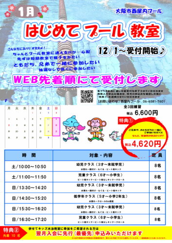2月子ども水泳教室入会に先行(最優先)申込可能