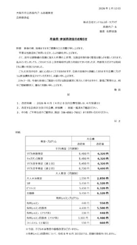 月会費・参加費改定のお知らせ
