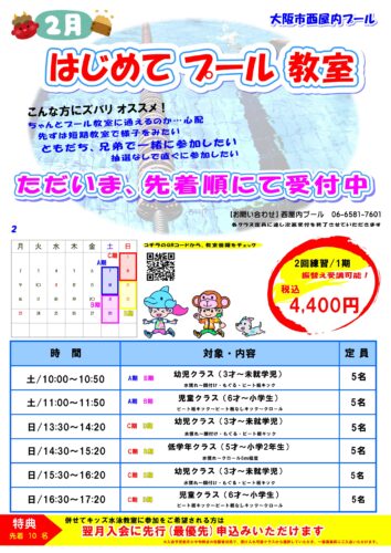 2月はじめて水泳教室予約申込