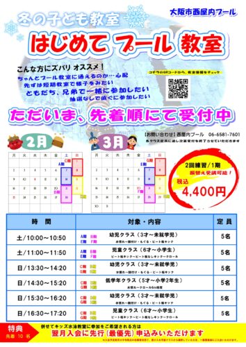 【先着5名限定】完全少人数制 2dayはじめて水泳教室開催♪