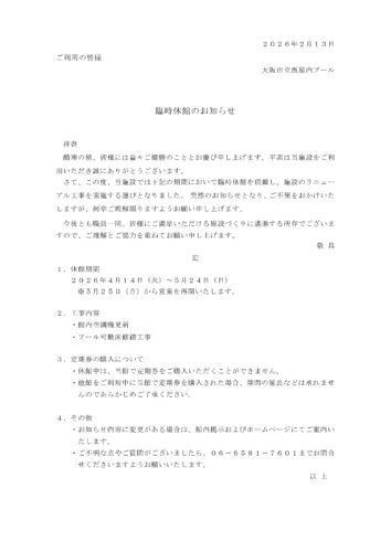 (4/14~5/24)臨時休館のお知らせ